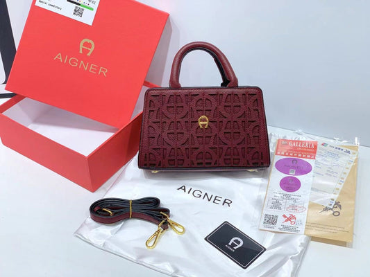 Aigner Burgundy Structured Top Handle Bag