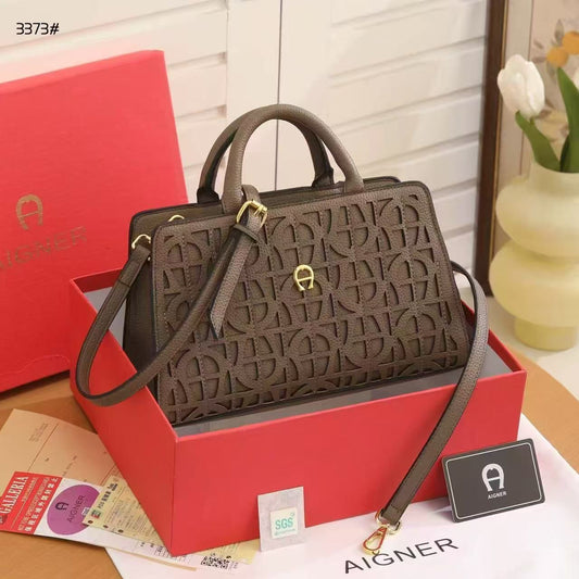 Aigner Structured Top Handle Bag – Taupe Grey
